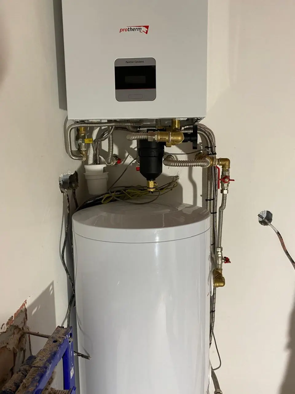 Výsledkom realizácie je funkčne a prehľadne namontovaný plynový kotol so zásobníkom teplej vody, pripravený na každodennú spoľahlivú prevádzku. Celé riešenie je navrhnuté s dôrazom na praktické usporiadanie, bezpečné napojenie a jednoduchý servisný prístup.