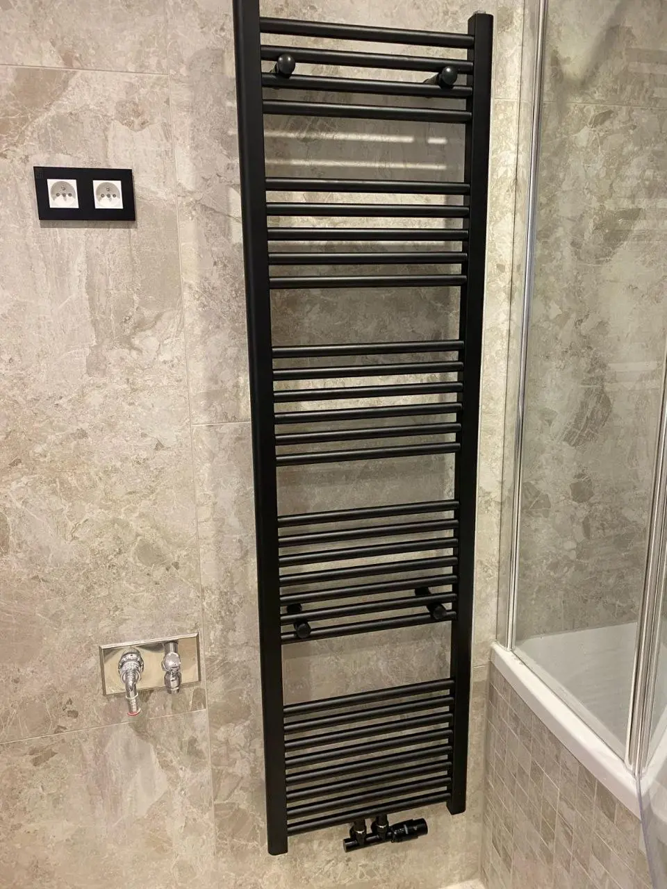 Výsledkom je zrekonštruovaná moderná kúpeľňa, ktorá ponúka komfortné používanie, elegantný vzhľad a technicky spoľahlivé riešenie. Nové batérie, sprchový set, vaňa aj radiátor spolu vytvárajú harmonický celok s dôrazom na funkčnosť, pohodlie a čistý dizajn.