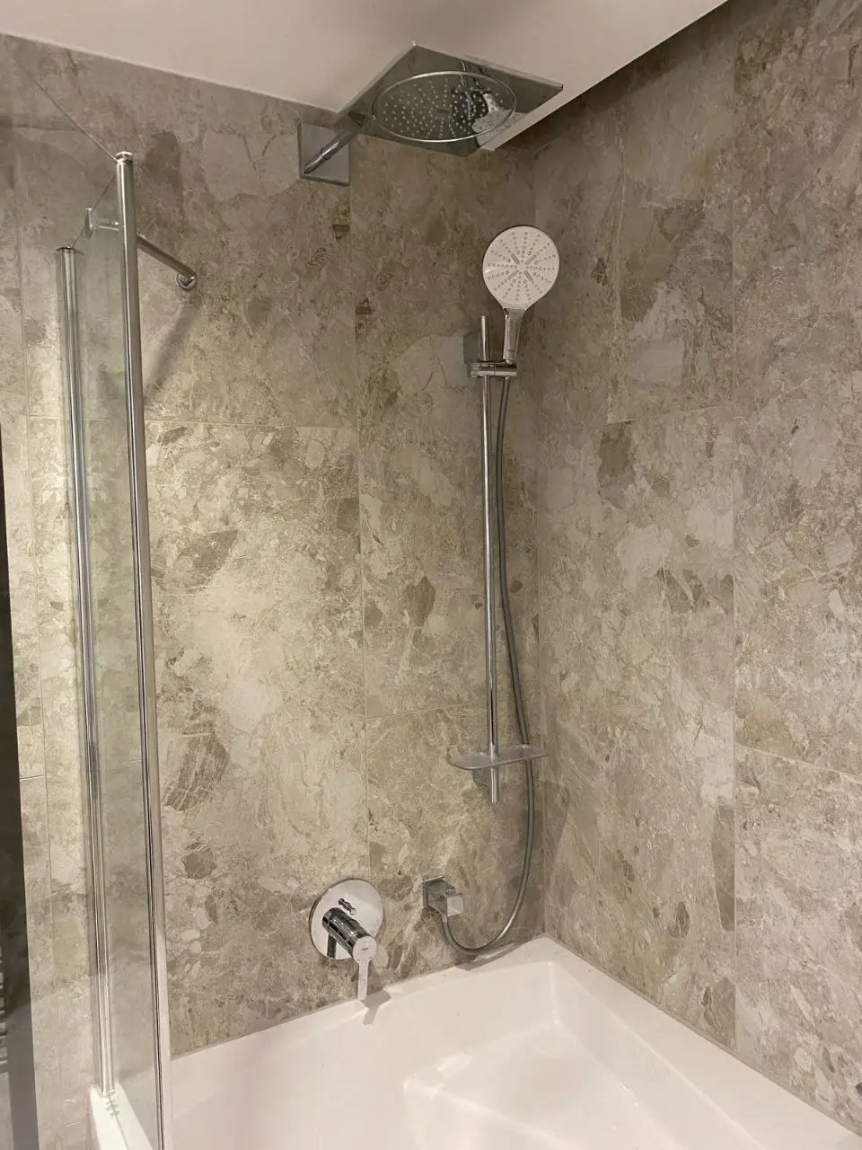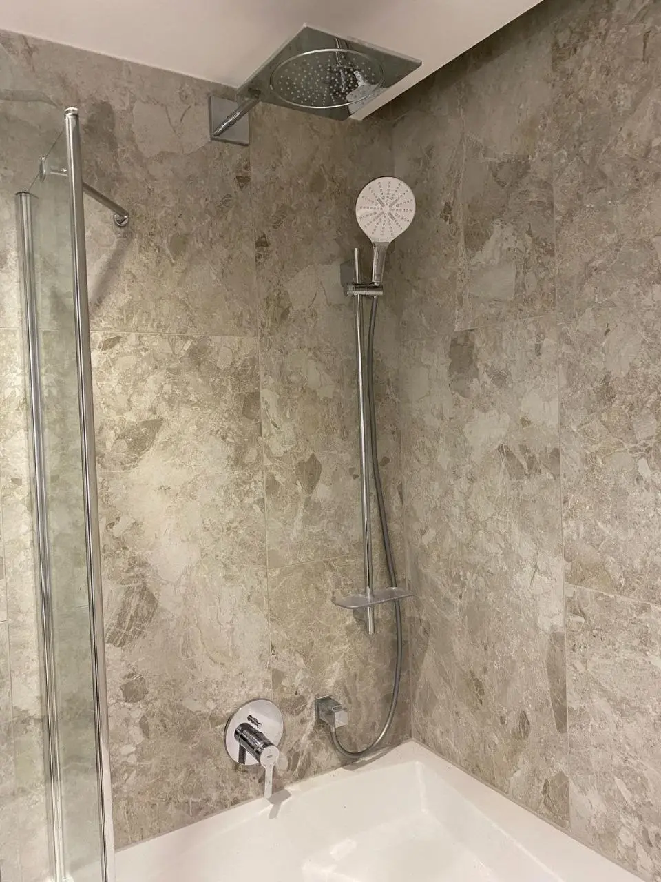 Súčasťou projektu bola montáž vane, osadenie sprchového setu, inštalácia podomietkovej batérie, montáž umývadlovej výtokovej batérie a tiež napojenie kúpeľňového radiátora. Dôležitou časťou realizácie bolo správne technické napojenie všetkých rozvodov vody, dôsledná kontrola funkčnosti a čisté osadenie jednotlivých komponentov tak, aby výsledok spĺňal nielen vizuálne, ale aj prevádzkové požiadavky.